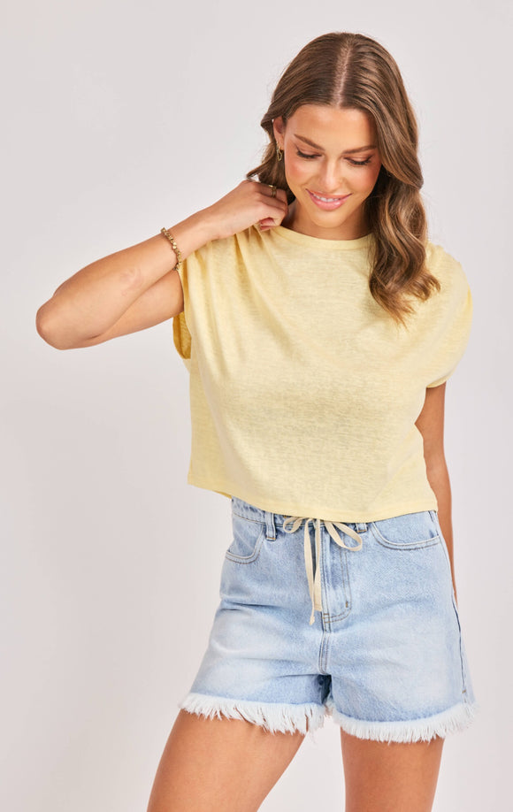 Warmth Gathered Shoulders Top Yellow