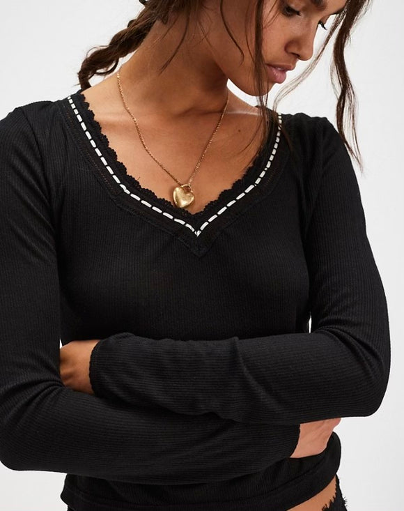 Kendra Split Neck Faux Leather Top- Cream