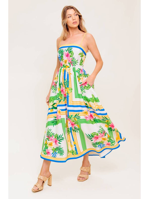 Take a risk and stand out in our Briggs Midi Dress. The bold print and straight neckline will turn heads, while the full skirt and smocked back bodice provide comfort and style. Perfect for any adventure, this midi dress will inspire you to embrace the unknown with confidence.