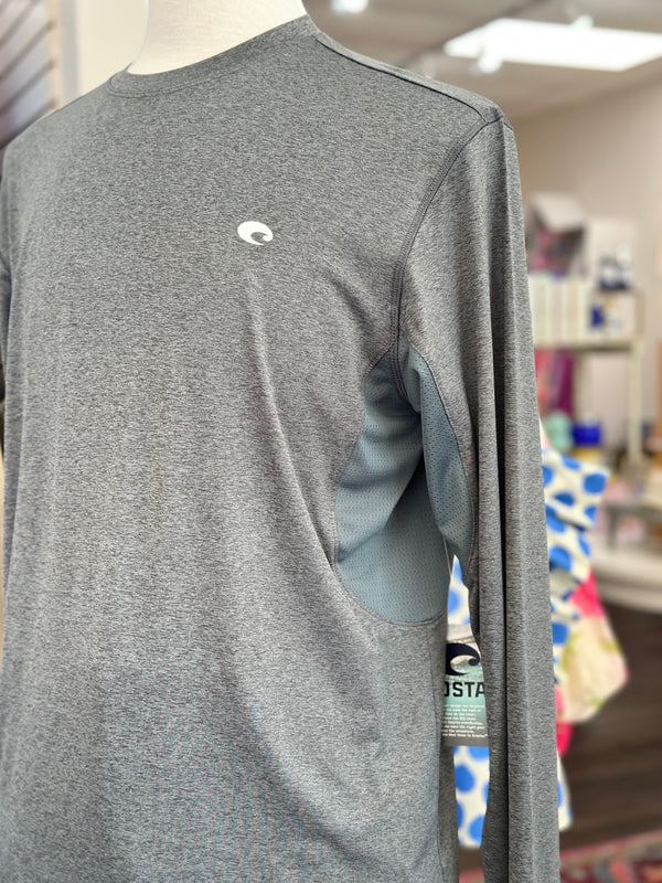 Introducing the Costa LS Voyager Performance Shirt in Shark Gray! This long sleeve shirt features a relaxed fit, tagless design, and UPF 50+ sun protection. The anti-bacterial and moisture-wicking technology keep you feeling fresh and dry, while the stretch knit fabric and vented mesh under arms provide extra mobility and breathability. Conquer any adventure in style and comfort with this must-have performance shirt!