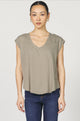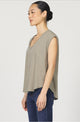 Introducing the Dear John Yanis Top Vetiver! This sleeveless top features a v-neck with a self neck band and baby hem for a touch of elegance. Made of 100% tencel, this relaxed fit top is perfect for any occasion. Effortlessly stylish and versatile, this Vetiver green top is a must-have addition to your wardrobe.