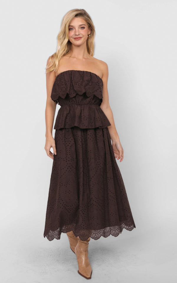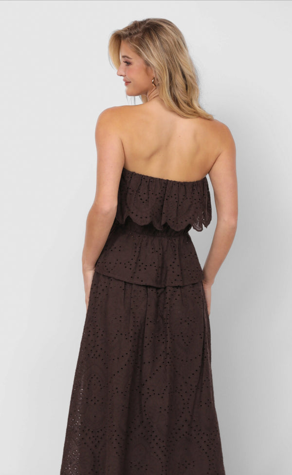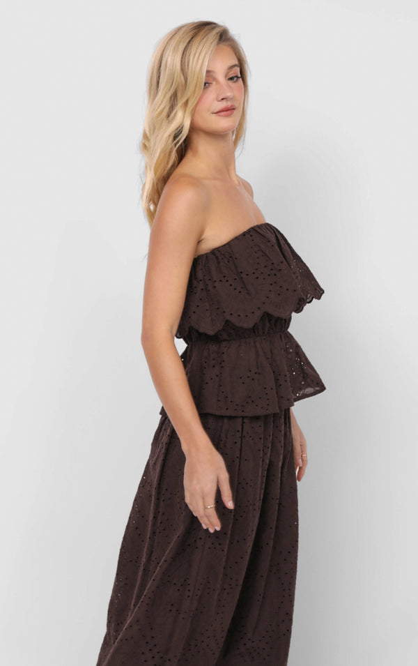 Expertly crafted with soft cotton fabric, this Double Vision Eyelet Peplum Tube Top offers a stylish and versatile addition to your wardrobe. Its eyelet design adds a touch of elegance, while the peplum style flatters your figure. Pair it with matching skin or cute denim for a fun and fashionable look all year round.