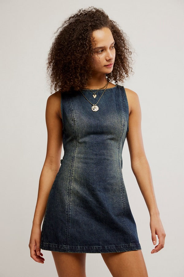 Get ready to turn heads in the Free People Atlas Denim Mini Vintage Indigo! This denim mini dress features a playful cut out back and a flattering tank top style. Perfect for a day out or a night on the town. Embrace your unique style and make a statement with this must-have dress!