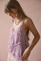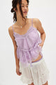 Indulge in dreamy feminine details with the Free People Sweet Escape Cami. This delicate cami features a tiered tulle peplum, floral appliques, and twisted straps for a truly romantic look. The V-neckline, cotton bust, adjustable straps, and lace trim add to the charm of this fairy-like top.