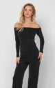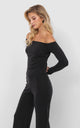 Introducing the Hustle Off Shoulder Knit Top by Sadie & Sage. In sleek black with long sleeves, this top is perfect for dressing up. Complete the look with the matching pants.