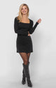 This Hustle Square Neck Ruched Mini Dress by Sadie & Sage boasts a sleek and modern design. With long sleeves and a stretchy fabric construction, this black dress offers both comfort and style. The square neckline and mini length add a touch of sophistication to this must-have dress.