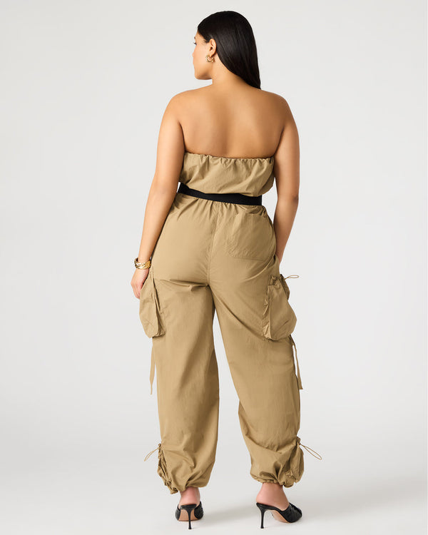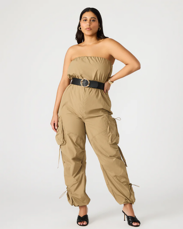 Stay stylish and organized with the Kylo Jumpsuit by Steve Madden. This strapless cargo jumpsuit features functional pockets, making it easy to keep your essentials close while on the go. This versatile piece is also fashionable and practical.