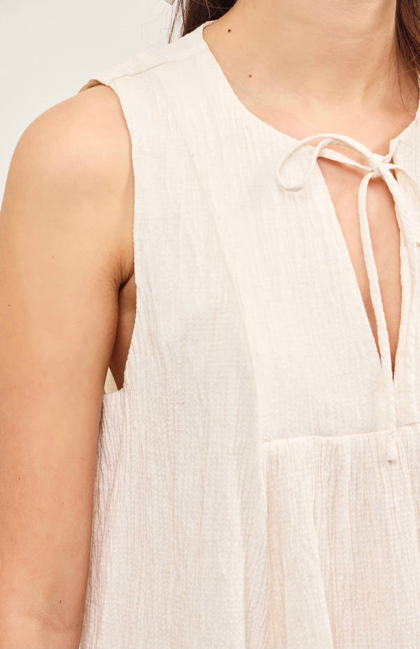 Introducing the Mirren Linen Tie Top - the perfect blend of style and comfort! With a V-neck and tied front, this breezy top will elevate any outfit. The sleeveless design and natural color add a touch of sophistication while the unlined linen fabric keeps you cool and comfortable.