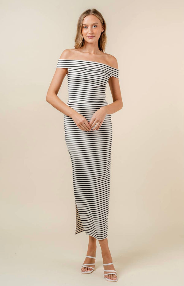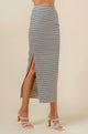Get ready to turn heads in our Murphy Maxi Skirt! This high-waisted, contemporary style features a nautical ponti stripe design in classic black and ivory. The side slit adds a touch of sultry allure while the maxi length provides a flattering and elegant look. Perfect for any occasion, this skirt will elevate your style game.