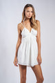 Add a touch of flower power to your wardrobe with the Natalie Mini Dress! This sleeveless, fit & flare mini dress features a playful white floral eyelet print, a sweetheart neckline, and a halter tie with adjustable straps. The ruched bust and waist cut out add a flirty touch, while the open back with smocked band adds a unique twist. Perfect for a sunny day out!