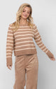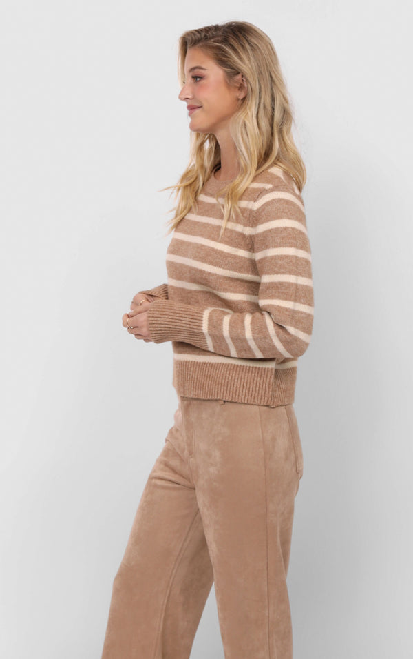 Introducing our Sheri Striped Sweater - a closet staple for anyone looking for a versatile and stylish piece. With its clean lines and ribbed waist hem, wrist hem, and neckline, this sweater offers both a flattering fit and timeless design. Perfect for any occasion, it's a must-have addition to your wardrobe.