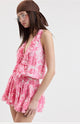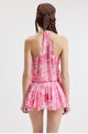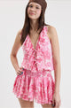 Floral chiffon mini dress with cascading ruffles and built-in shorts