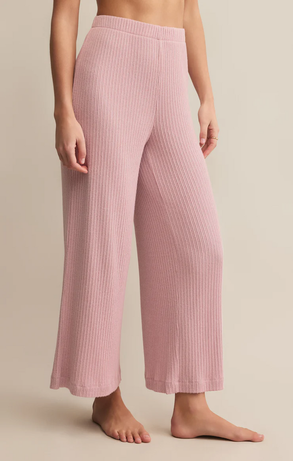 Introducing the Z Supply Coastline Rib Pant in Pink Pearl! Made from our luxurious Silky Mini Rib fabric, these wide-leg pants offer all-season comfort. Relax in the flowy, ultra-soft material and enjoy the convenience of a pull-on high-rise fit and elastic waistband. Machine washable for easy care.