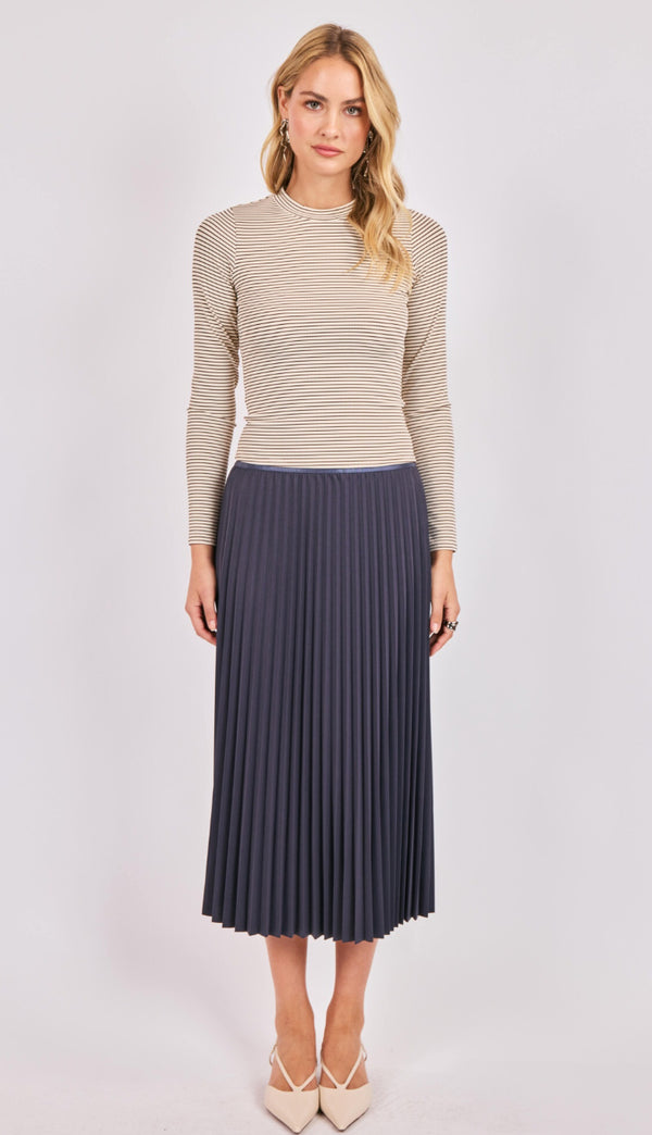 Full of Charm Pleated Midi Skirt ~ Navy - Small is backordered and will ship as soon as it is back in stock.