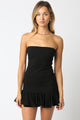 This Emilie Ruffle Dress is a must-have for any wardrobe. With its elegant ruffled hem and convenient zipper closure, it offers a classic look that is perfect for any occasion. The strapless/tube top style adds a touch of sophistication, while the black color makes for a versatile and timeless piece.