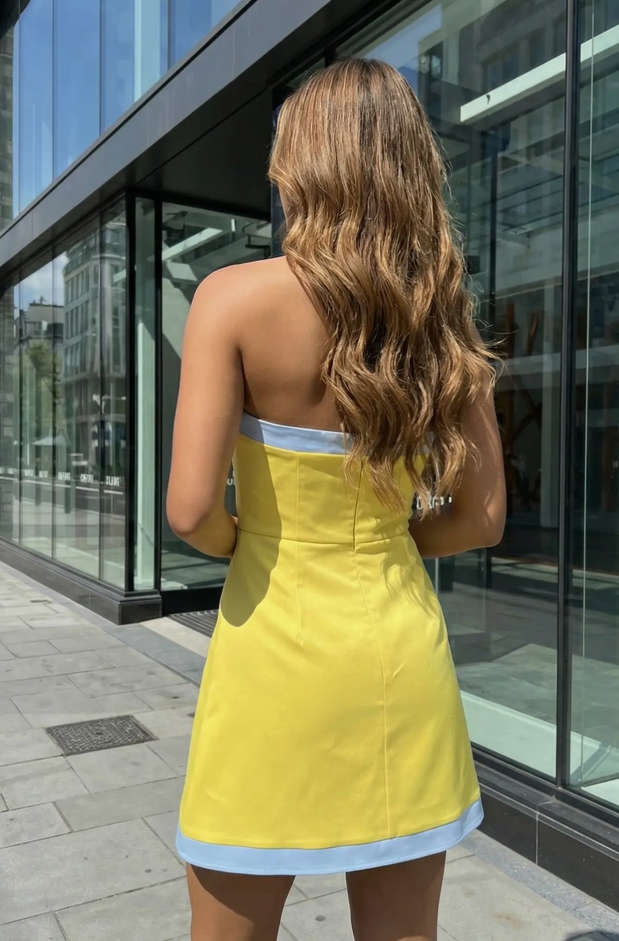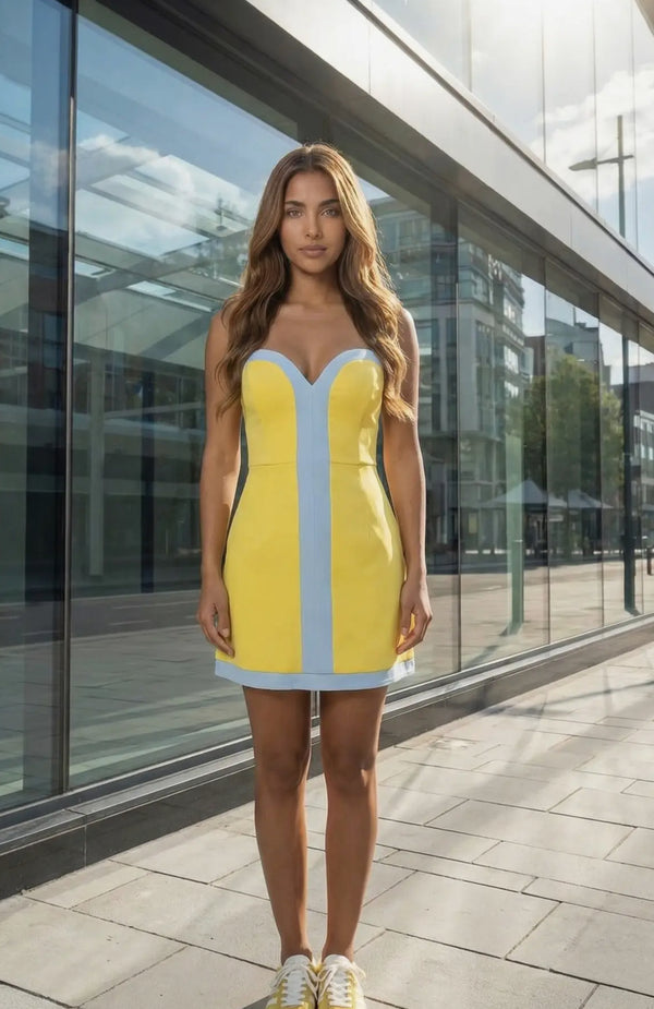 Hadley Color Block Strapless Romper Mini ~ Yellow/ Light Blue
