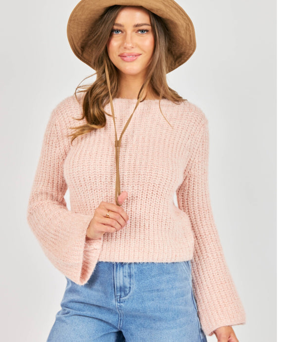 Ginis Bell Sleeve Sweater- Blush