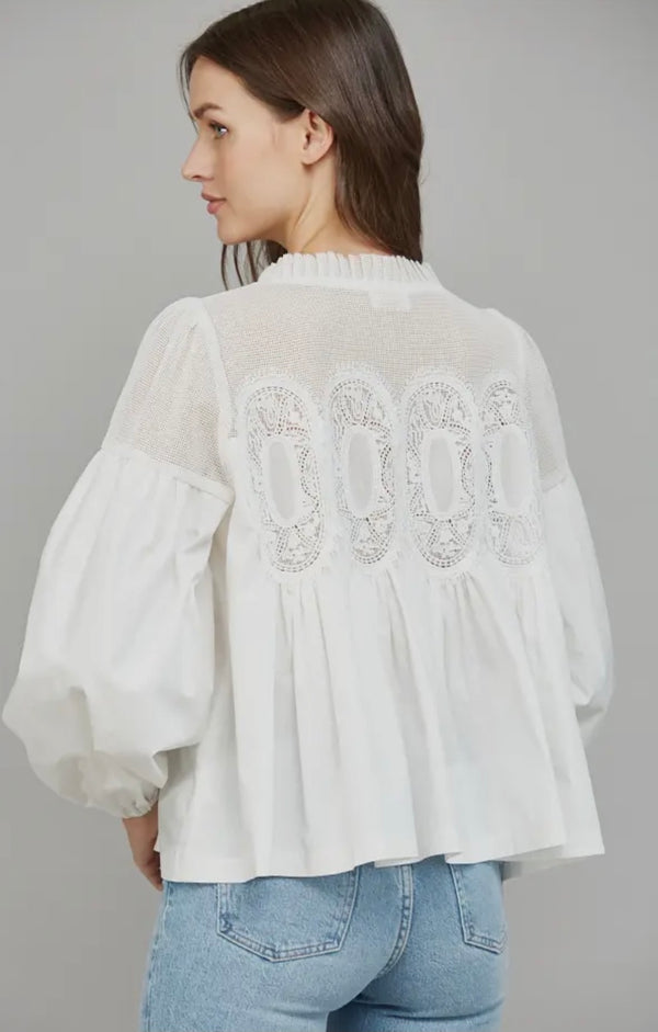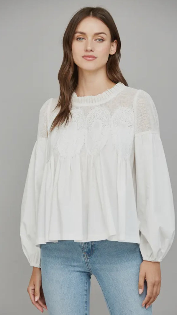 Brooke Lace Applique Detail Mixed Media Top - Off White - Large is backordered and will ship as soon as it is back in stock.