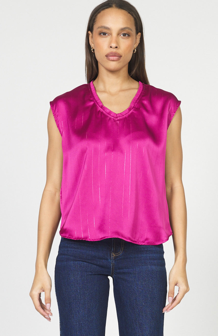 Discover the Yannis v-neck sleeveless top in stunning colors.