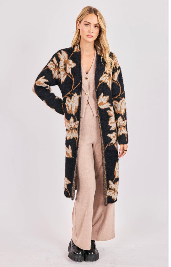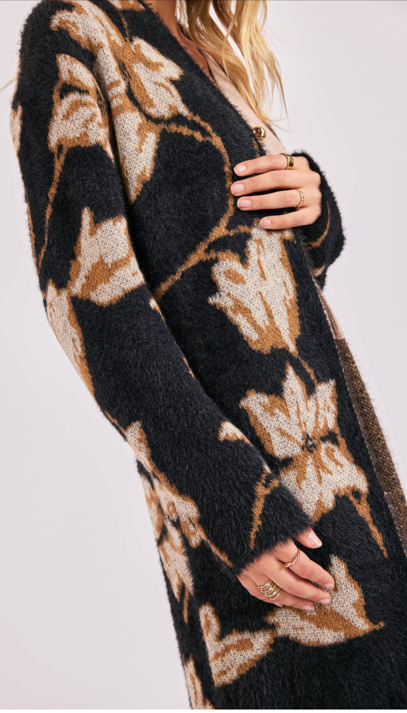 Emory Floral Intarsia Open Duster Cardi - Small is backordered and will ship as soon as it is back in stock.
