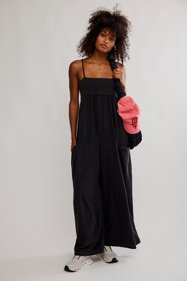 Free People Hot Shot Strappy Onesie Black