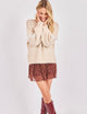 Ivory hand embroidered long sleeve knit pullover sweater70% Polyester, 21% Nylon, 8% Wool, 1% SpandexMachine wash cold (gentle, inside out), lay flat to dry/hang dry