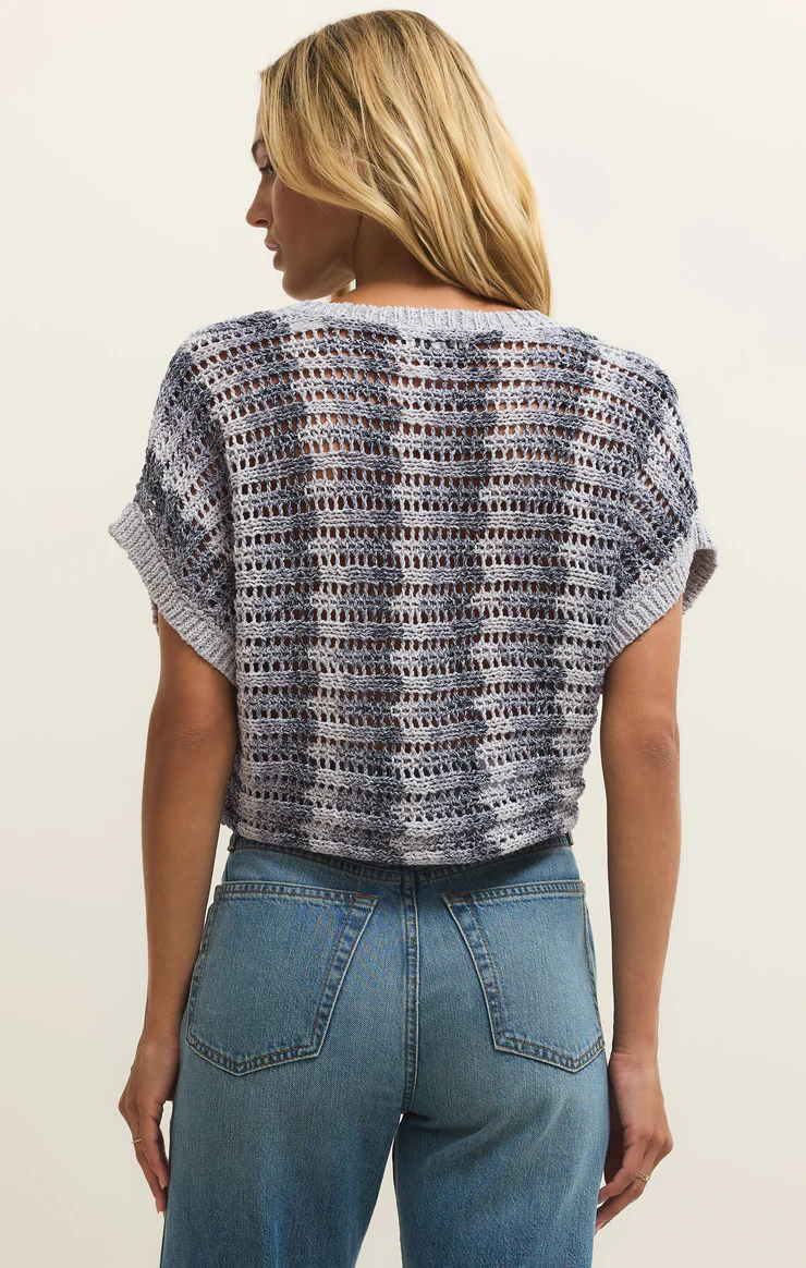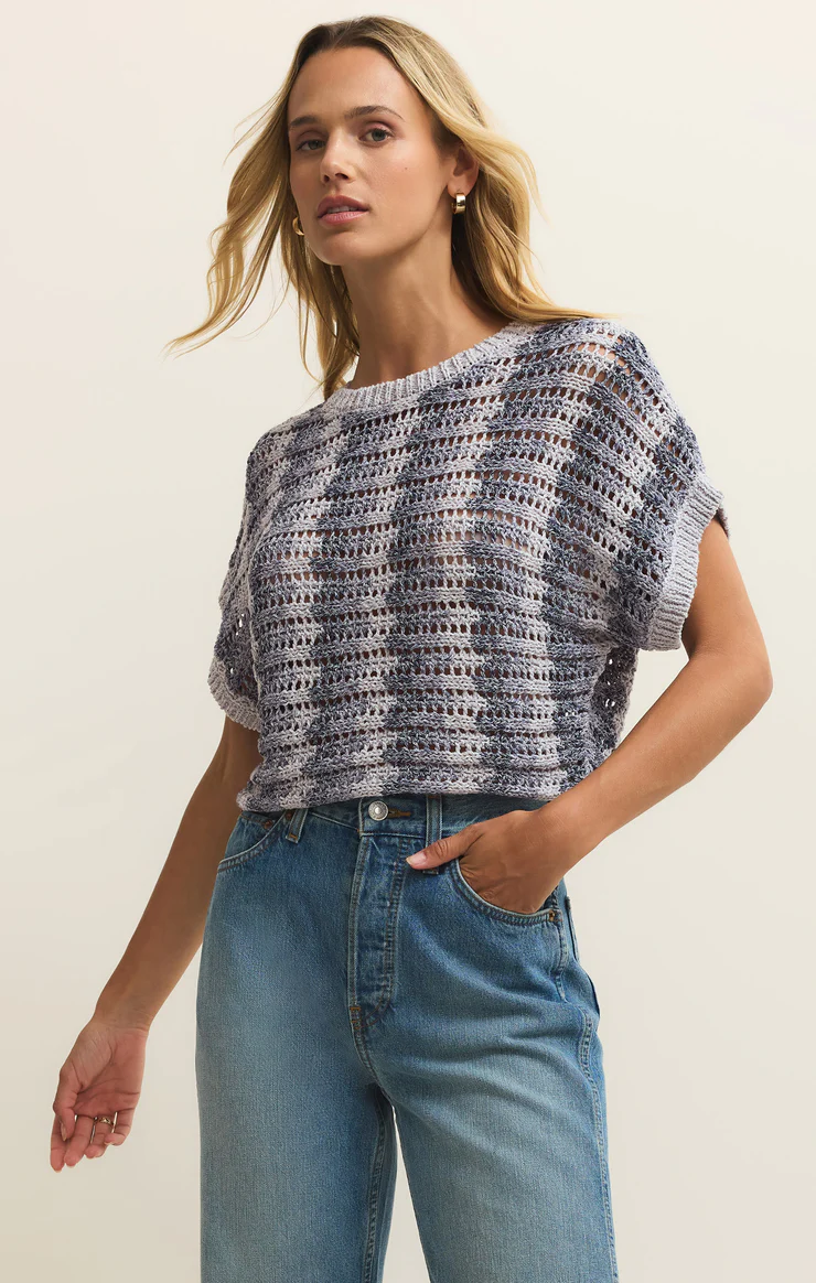 Z Supply Ballast Crochet Stripe Top - Calypso Blue Indigo