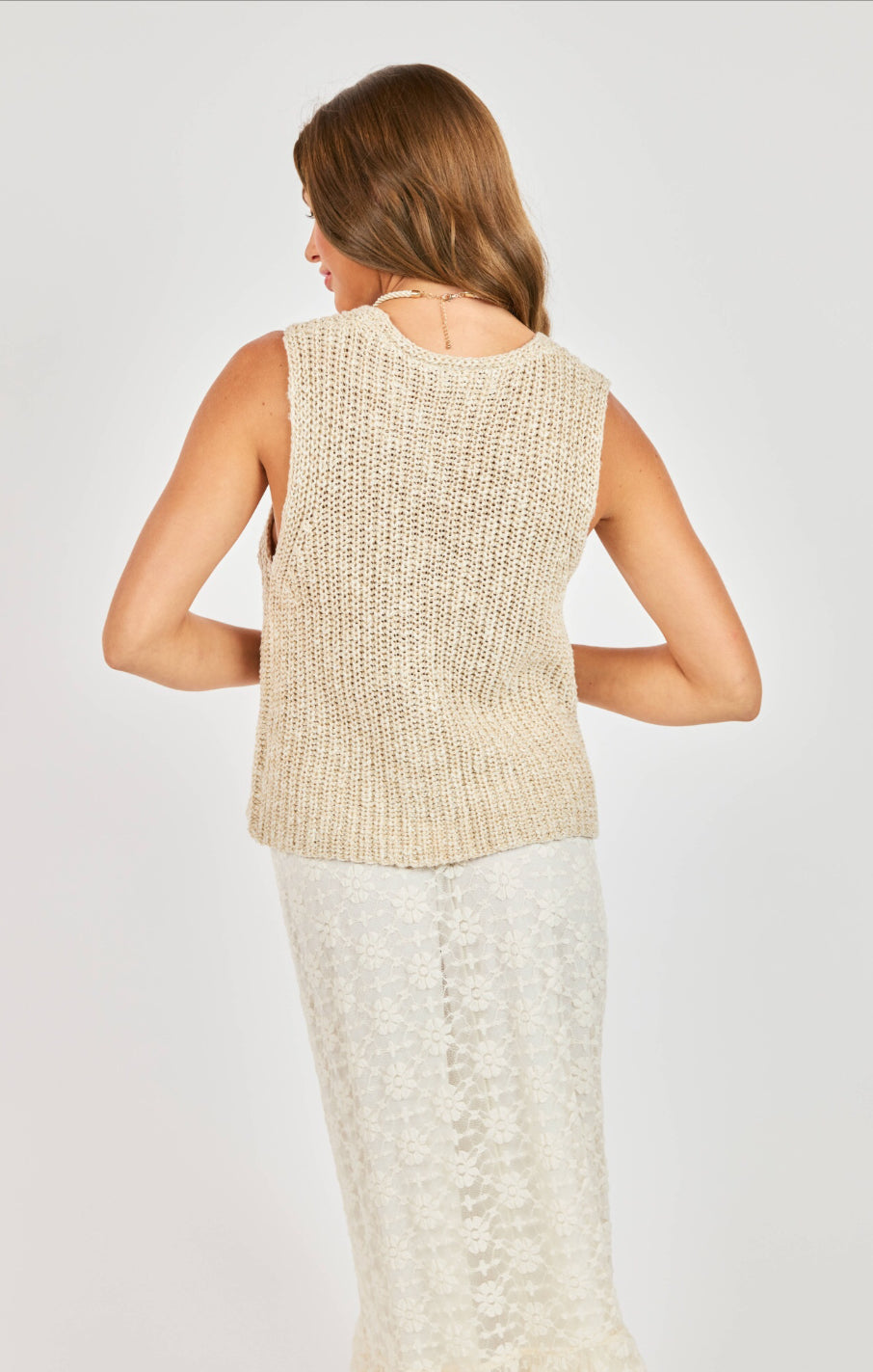 This versatile knit vest serves as the perfect lightweight layer for transitioning between seasons.