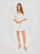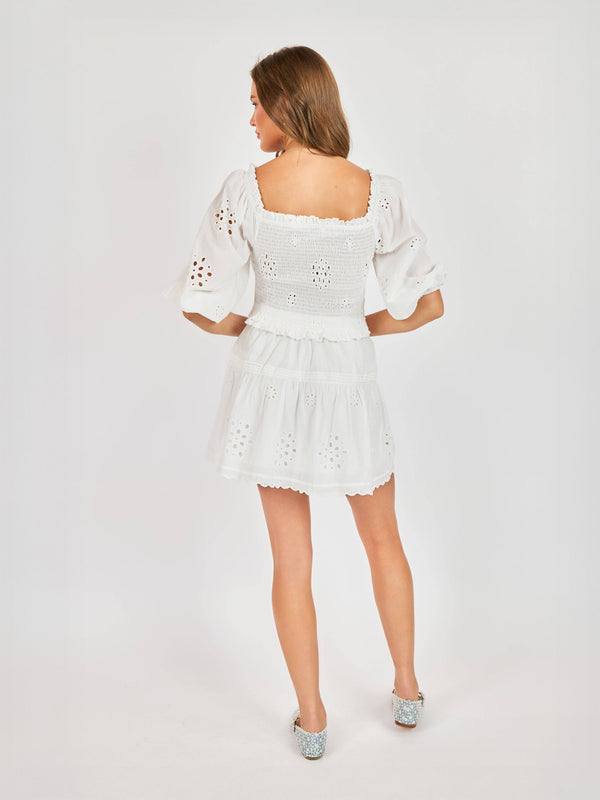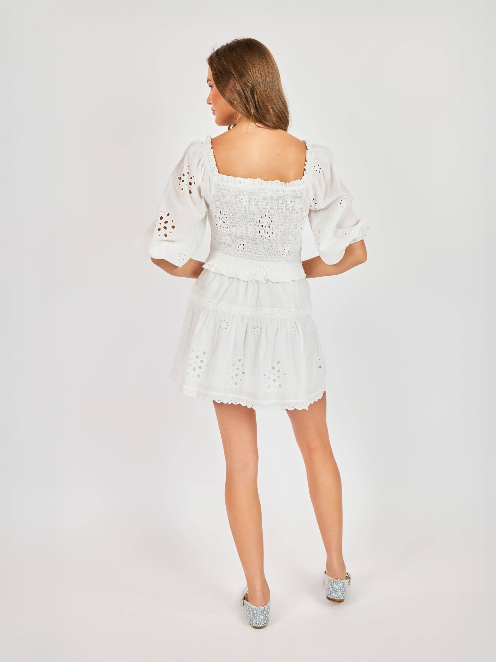 This white Bloomfield Smocked Top features a romantic, feminine silhouette with intricate detailing that brings a fresh, airy feel to your wardrobe.