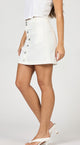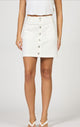 Effortless style and comfort with the Quinn mini skirt in white denim, designed with a flattering high rise and clean hem for a polished finish.