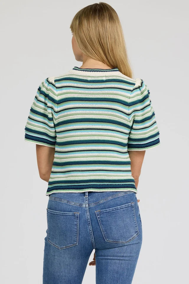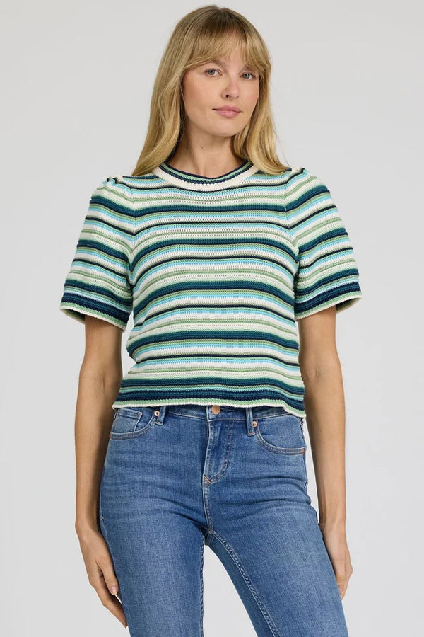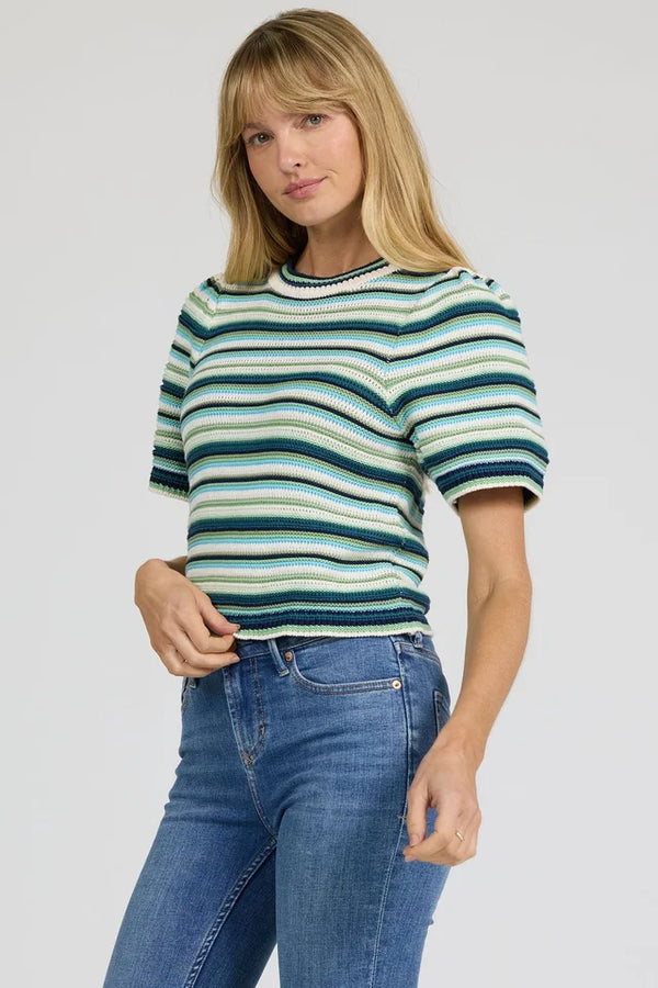 Dear John Simone Short Sleeve Sweater - Milky Blue Stripe