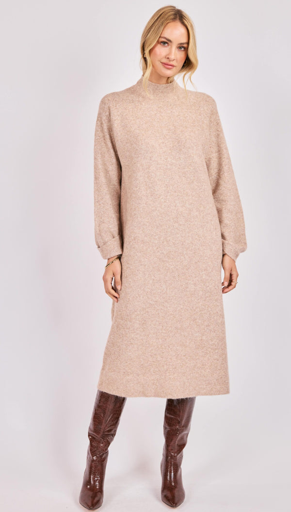 Hadley Turtleneck Long Sleeve Knit Midi Dress - XS is backordered and will ship as soon as it is back in stock.