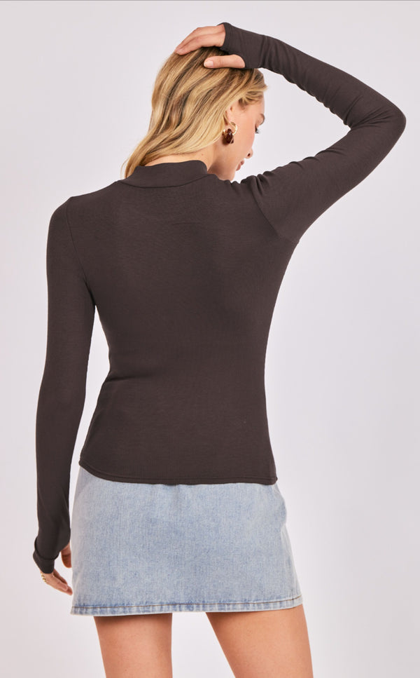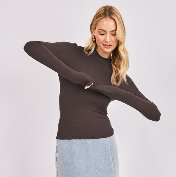 Ronan Mock Neck Top with Thumbholes~ Dark Brown - XS is backordered and will ship as soon as it is back in stock.