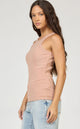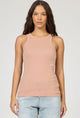 The Tamia cropped racer neck tank offers a blend of classic style and fitted silhouette.