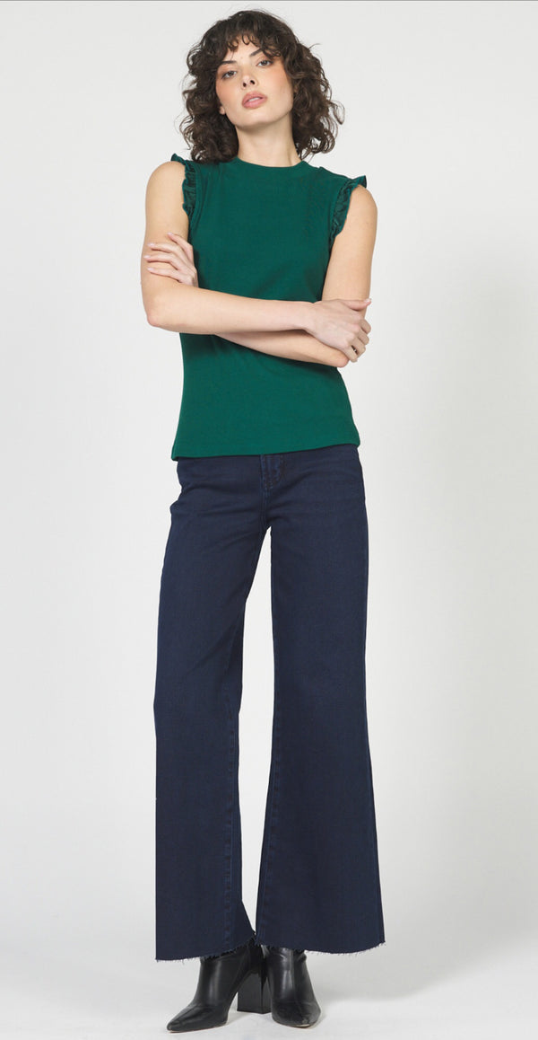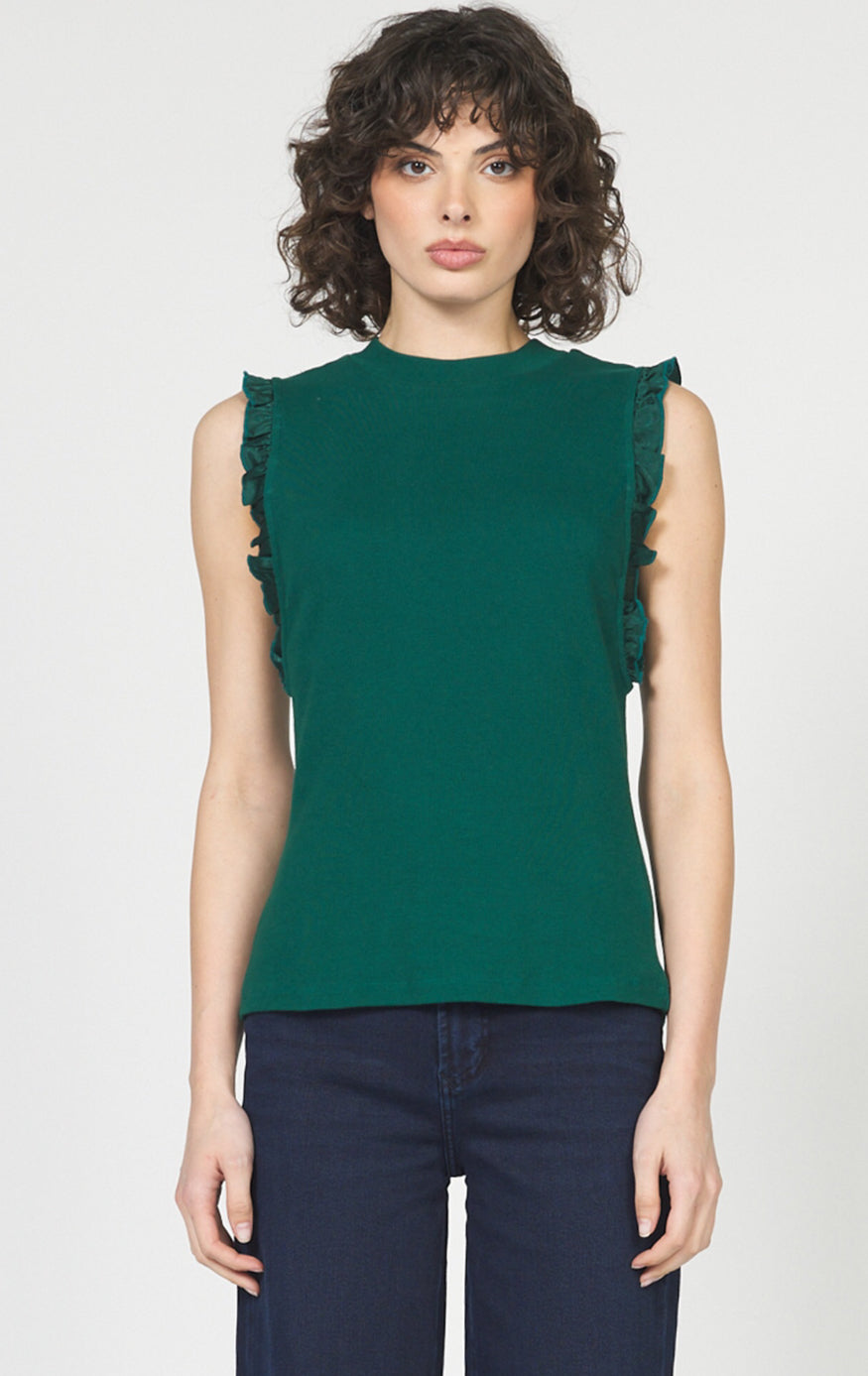 Hightlight your wardrobe with the Bridgette suede ruffle top.