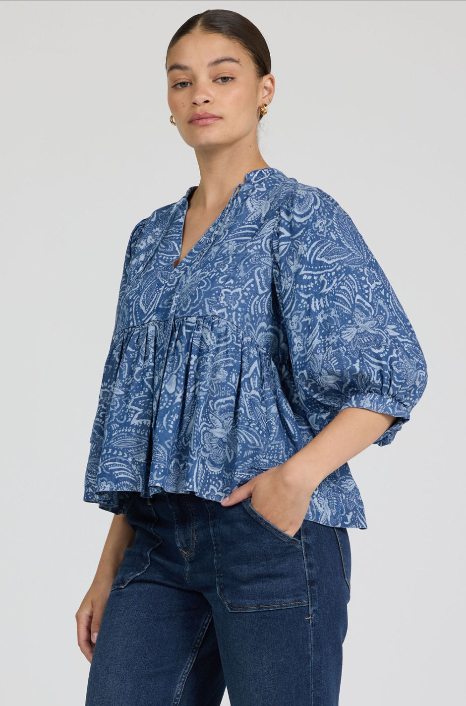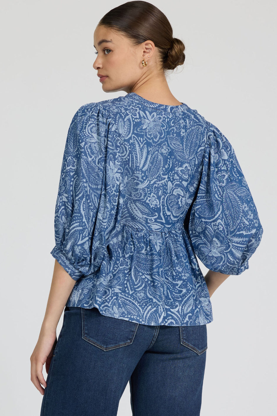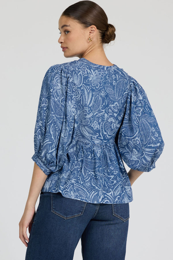 Discover the perfect blend of elegance and comfort with our split neck flowy fit paisley print top, designed to elevate any wardrobe with its relaxed, bohemian charm.