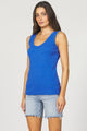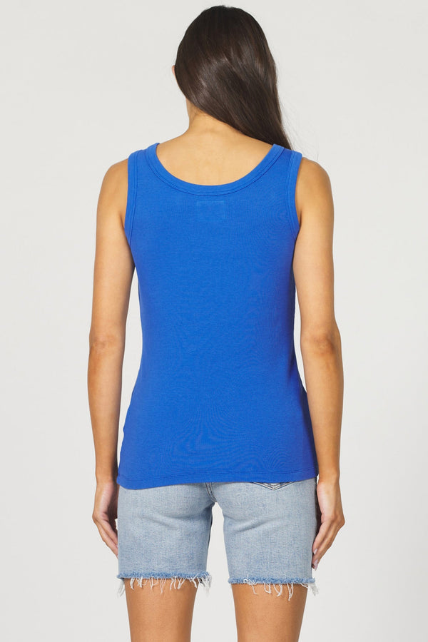 The Paula Tank by Dear John Denim is a jewel neck fitted top crafted from a luxurious blend of 96% cotton and 4% spandex, offering women’s fashion that combines comfort and style effortlessly.