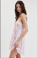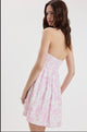 Pastel Dolmen Print Sweetheart Neck Strapless Front Tie with Keyhole Back Smocked Band Ruffle Down Swing Style Mini Dress