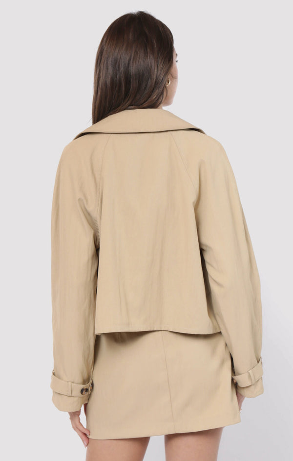 Cropped & cute - Something Secret Cropped Trench Jacket in Khaki! The perfect Fall transition piece, add to your closet now!
