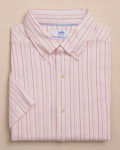 Southern Tide Marina Seersucker Coastal Breeze® Short Sleeve Sport Shirt Sea Pink