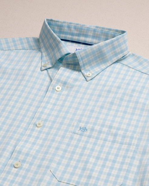 The Precheck Plaid Coastal Breeze® Sport Shirt is characterized by its clean lines and contemporary plaid design. Engineered with Southern Tide's proprietary Coastal Breeze® cooling technology, this garment effectively regulates temperature, ensuring a consistently cool and breathable experience throughout the day. Its quick-drying and moisture-wicking capabilities, combined with UV protection, render it a practical option for travel, outdoor activities, or daily use.