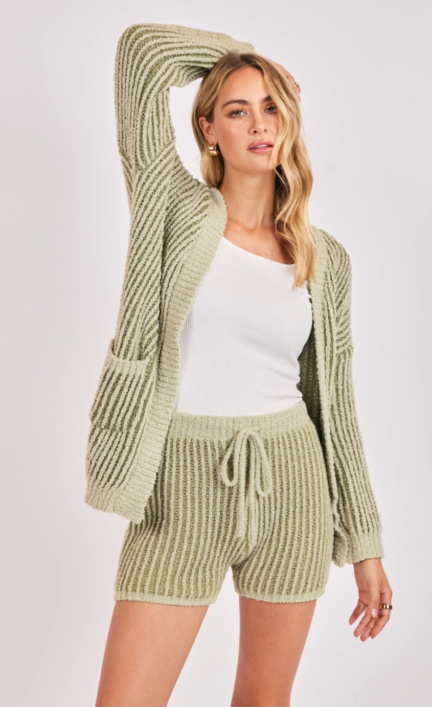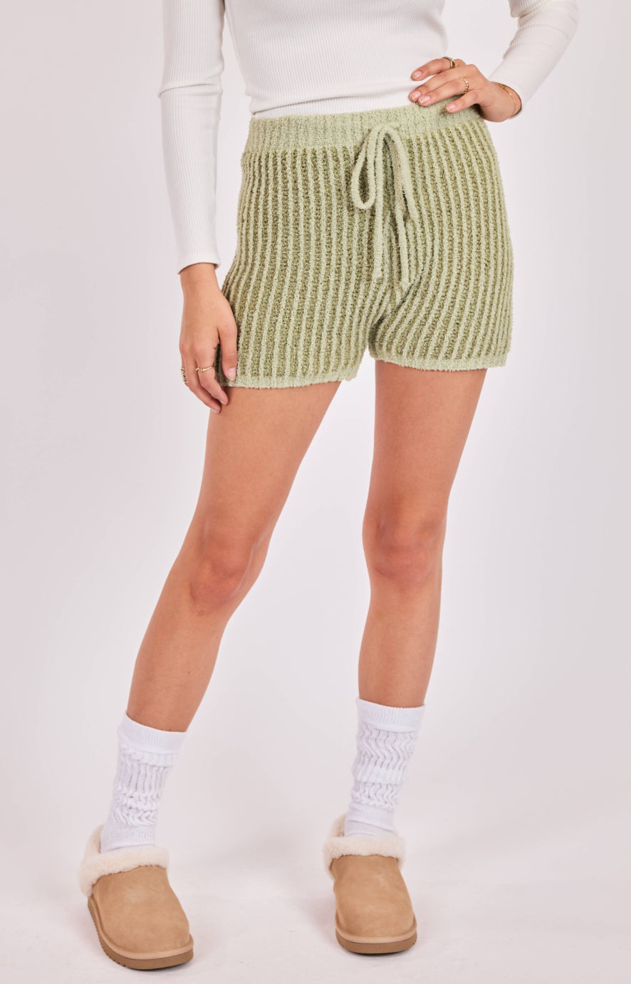 Tessa Cozy Shorts -Sage Green - XS is backordered and will ship as soon as it is back in stock.